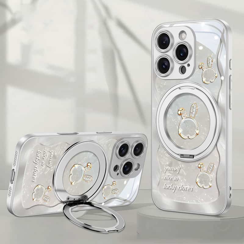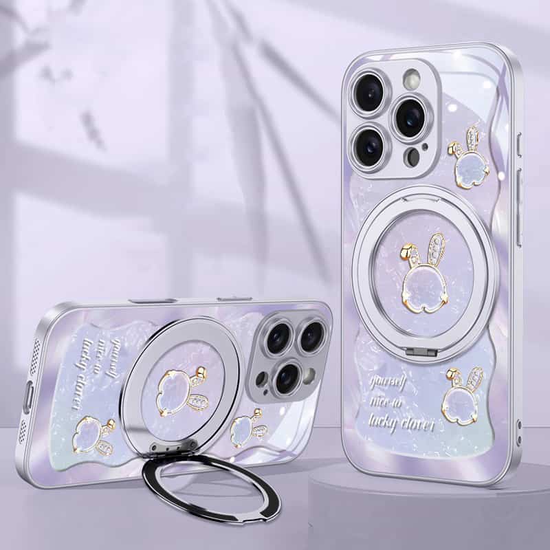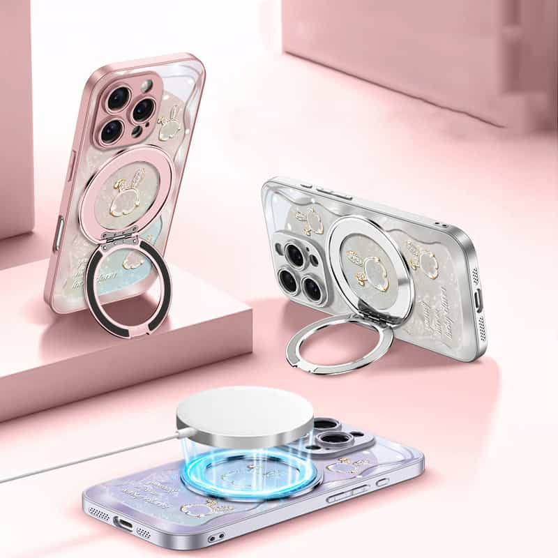 Add a blend of elegance and functionality to your iPhone 12 with the Rose Pink Wave Texture Beiwen Rabbit Magnetic Stand Phone Case. Named for its unique wave texture and charming Beiwen Rabbit design, this case offers style and practicality in one. The integrated 360° magnetic stand allows for effortless hands-free viewing and seamless compatibility with MagSafe accessories, making it perfect for everyday use.