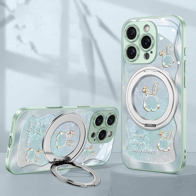 Rose Pink Wavy Shell Texture Rabbit Magsafe (Magnetic) Stand Phone Case for iPhone 14 Series